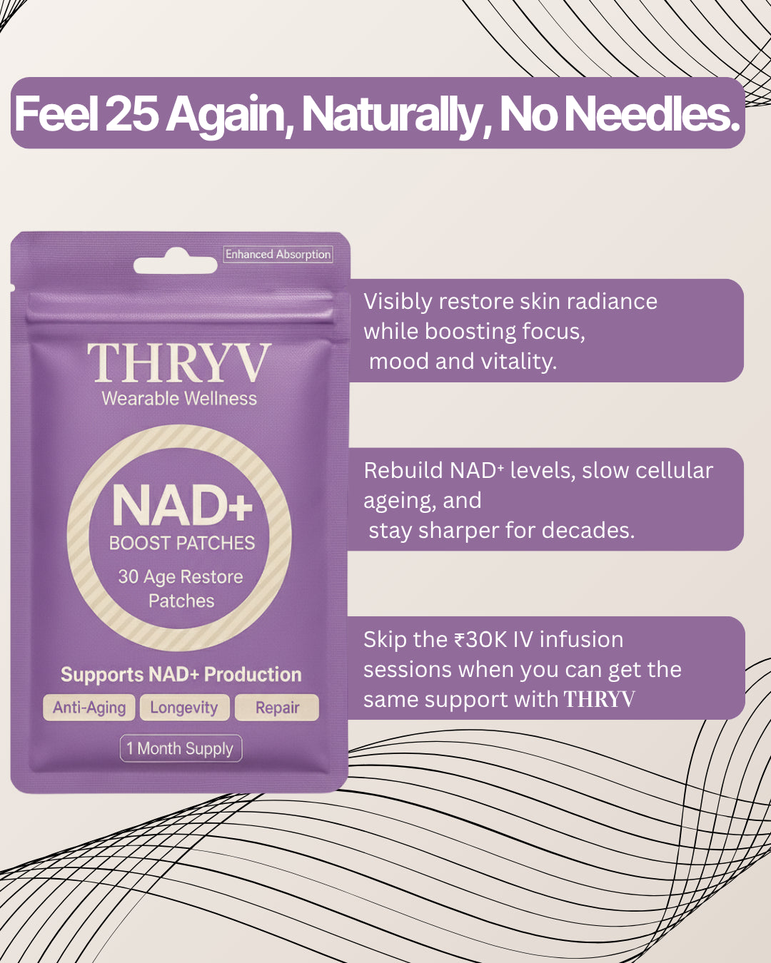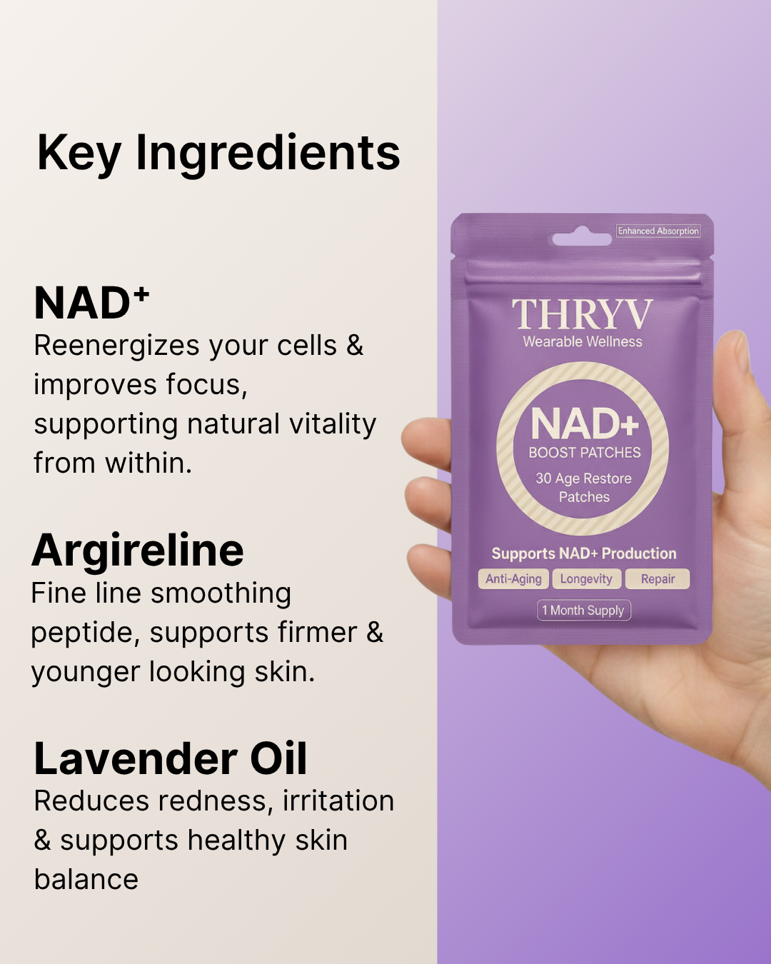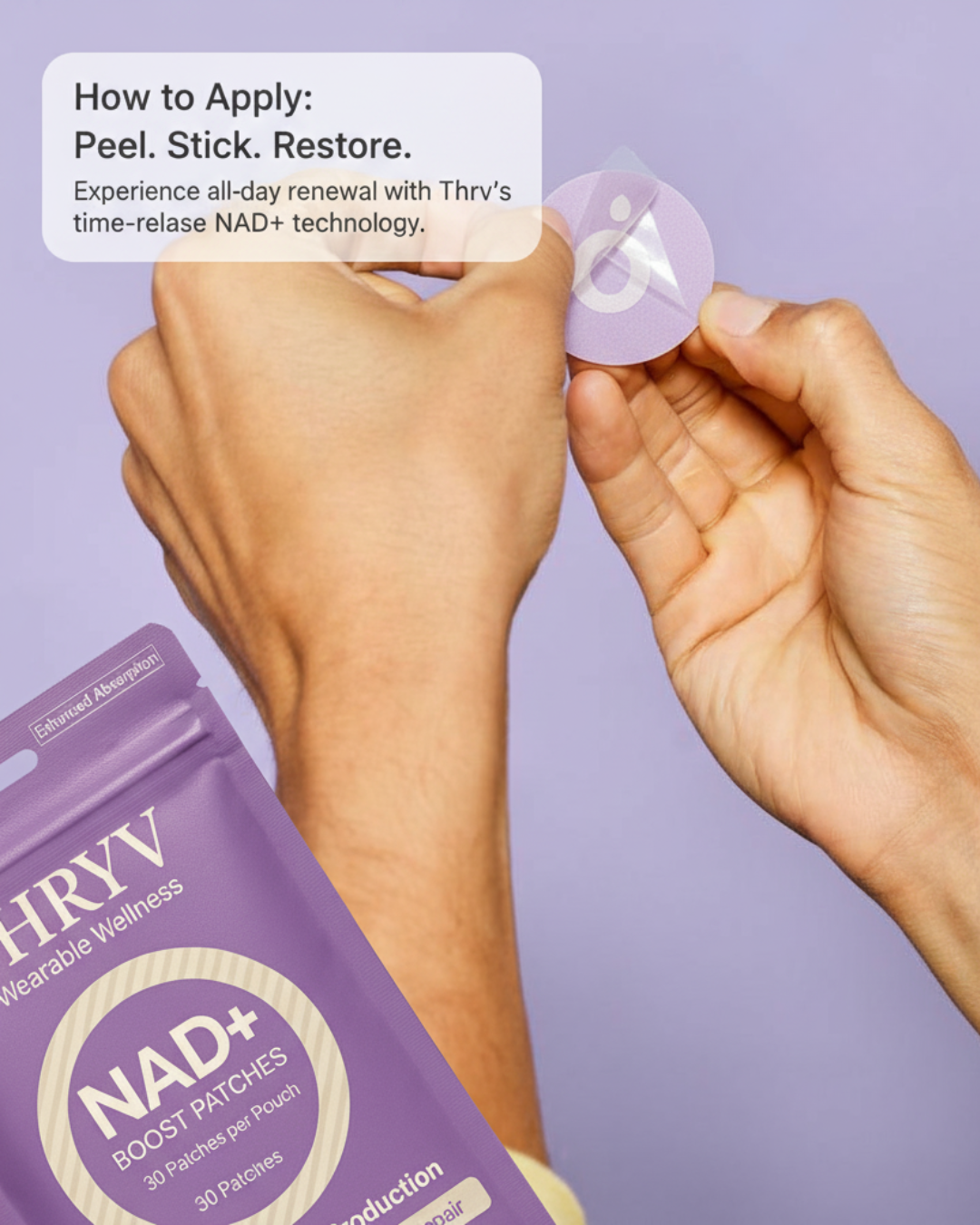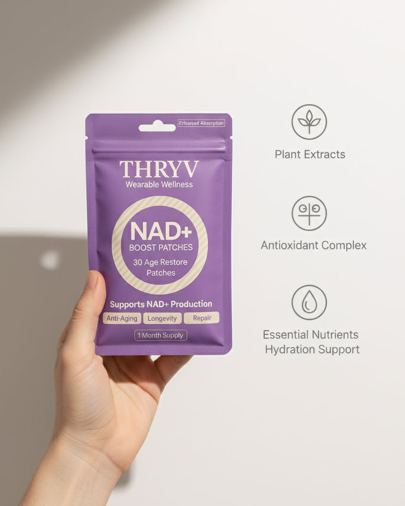 Thryv™ patches are advanced time-release transdermal patches designed to support your body’s NAD+ levels - the molecule essential for energy, focus and healthy aging.